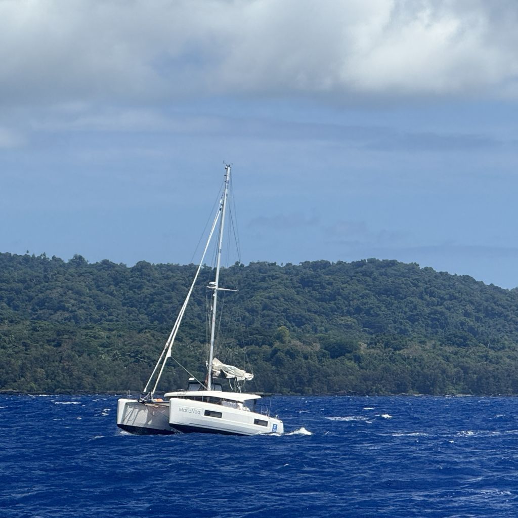 Gegen Wind und Wellen, das ist einfach nicht ihr Ding. MariaNoa ist klein, schwer, mollig… Unsere Dancing Queen springt aus dem Wasser, nur um mit einem lauten Knall wieder in ihr Element zurückzustürzen. Das hält höchstens ein paar Stunden an, dann ist die Crew einfach überfordert. Entlang der Küste von Ambrym und um Kap Matao Tiupeniu auf dem Rückweg zur Mele Bay auf Efate muss sich MariaNoa in Vanuatu zweimal beweisen.