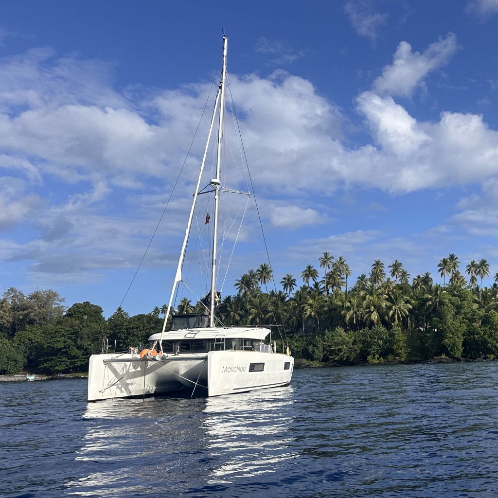 A friend is writing a comprehensive article for Palstek magazine on the subject of large-series yachts on long voyages. MariaNoa is the first boat in a whole series of monohulls and catamarans that will be presented in detail as part of this series. In addition to the text sections, which are based on an interview lasting several hours, we need various photos. With Sailing MariaNoa’s various external hard drives full of image material, that shouldn’t be a problem. But we were wrong. We have gigabytes of film material but very little, if any, photographic material, as we produce films. What we need for the lead story is a landscape-format image of “MariaNoa in front of a lonely palm island.” Craig Cove is the ideal location for this, and a large number of beautiful photos are taken.