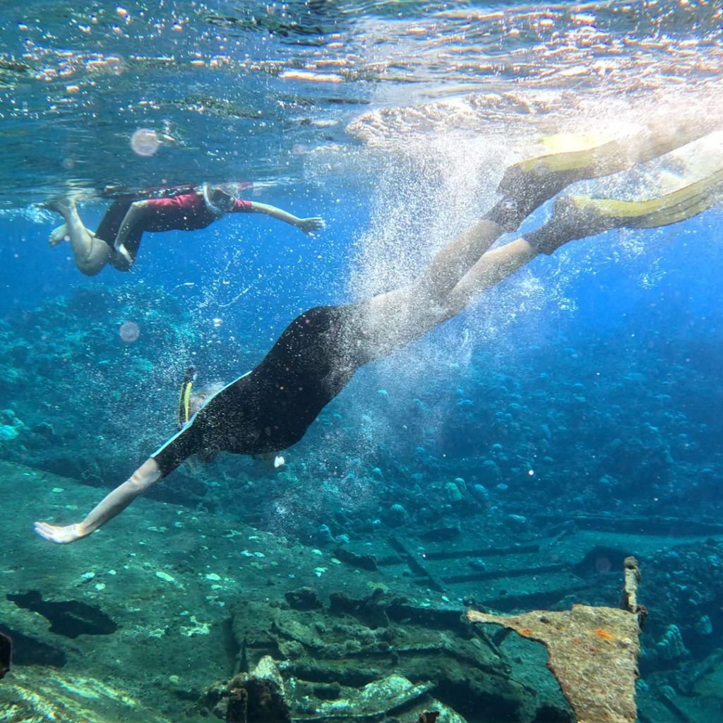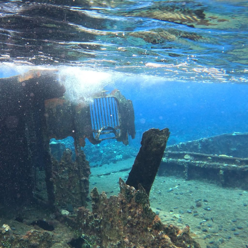 In Craig Cove, there is a well-preserved wreck in shallow water. It’s fun to dive down to the wreck again and again. Unfortunately, I have an inflammation in my calf and have to stay in the dinghy.
