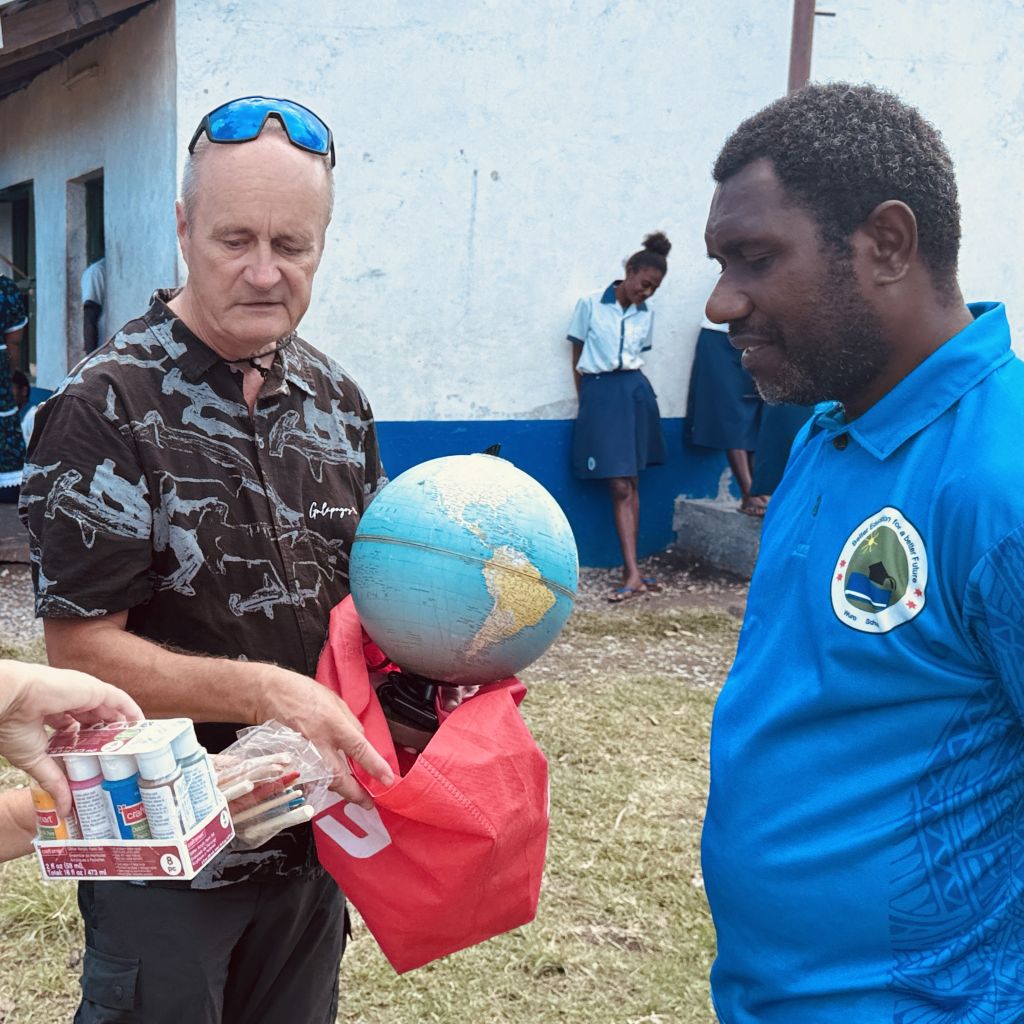 There is a boarding school in Craig Cove. We visit it together with the crew of the SV Sumore II. An English lesson is currently taking place in one of the classrooms. However, the teacher does not know how to involve us English-speaking visitors in the lesson. In another classroom, a math lesson is taking place. The teacher is very pleased about the unexpected surprise. There is a world map hanging on the wall. This allows me to show how far away Germany is from Vanuatu. I doubt that the children have a clear idea of the Earth and distances. We have brought some gifts with us, including a globe, which will certainly be put to good use in class. The headmaster answers a few of our questions. He tells us that many of the children’s parents have left the island to find work and are glad that their children are well looked after at the boarding school. The final exams are coming up soon. The tension is palpable.