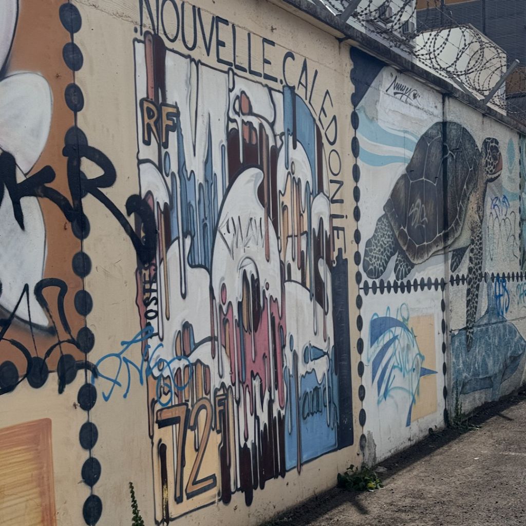While in Vanuatu the villagers live in their traditional houses as they did a thousand years ago, in New Caledonia this architecture can only be found in exhibitions and open-air museums. We pass the ruins of the burned-down Case du domaine de Deva. A few months ago, there were riots in New Caledonia between the locals and the French-descended population. Entire industrial parks went up in flames and cultural assets were burned down.