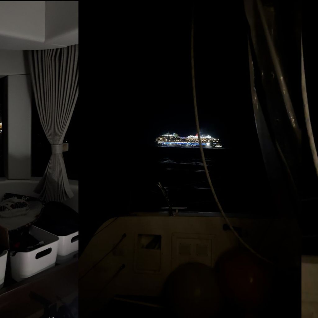 In finsterer Nacht begegnen wir im Canal de La Havannah dem Kreuzfahrtschiff Carnival Splendor. Die Carnival Splendor ist ein großes Kreuzfahrtschiff der Carnival Cruise Line, das seit 2008 in Betrieb ist und sich durch ein breites Unterhaltungsangebot, Sportanlagen, mehrere Restaurants und Spa-Bereiche auszeichnet, wobei es besonders Familien anspricht und auf 13 Decks Platz für über 3.000 Passagiere bietet. Nach einigen Renovierungen, zuletzt um 2019, wurde es für den australischen Markt umgestaltet und ist für seine bunte, Las Vegas-ähnliche Innenausstattung bekannt, inklusive überdachtem Poolbereich, Wasserrutsche und zahlreichen Unterhaltungsmöglichkeiten.