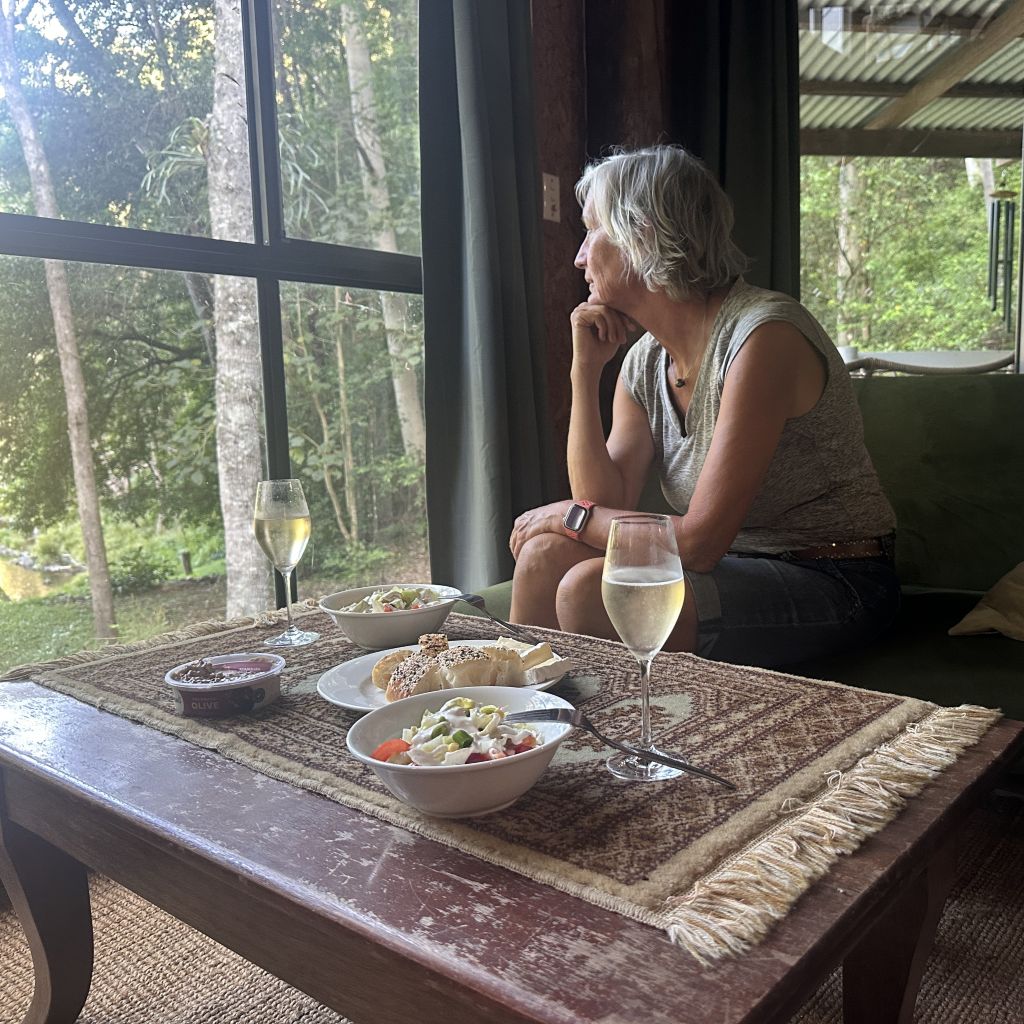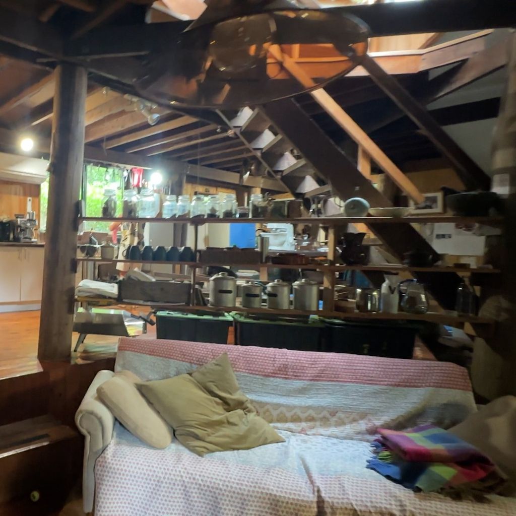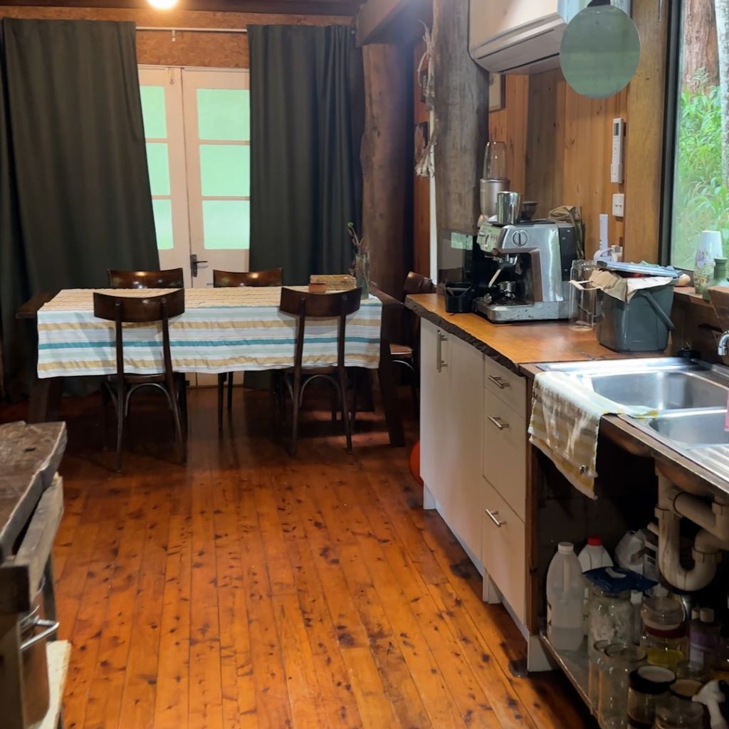 We rent a car and drive through the enchanting landscape upstream of the Bellinger River towards Darkwood. The house is located under trees directly on the river. It is not an anonymous weekend house but is very personally furnished. The open, flowing rooms remind me of the architecture of American architect Frank Lloyd Wright. We spend two nights there, wash ourselves in the river, and go on a short hike.