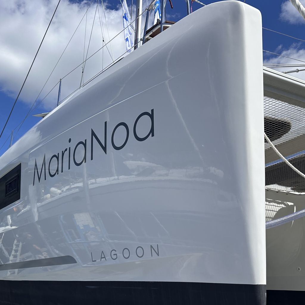 The craning, pressure washing, and positioning are done so quickly that we can see MariaNoa floating past the window while we are still clearing customs. We renew the antifouling, install the newly delivered rope stripper, have the hull polished, and service both engines. We stay for a week before heading south along the east coast.