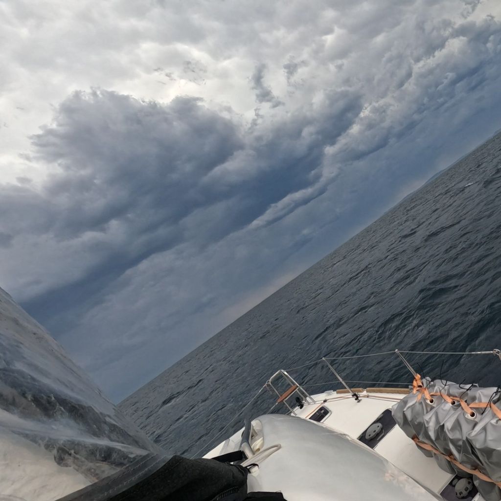 Es ist schwer ein Wetterfenster Richtung Süden zu finden. Ein schweres Gewitter löst das nächste ab, die Winde drehen von Nord nach Süd und wieder zurück.