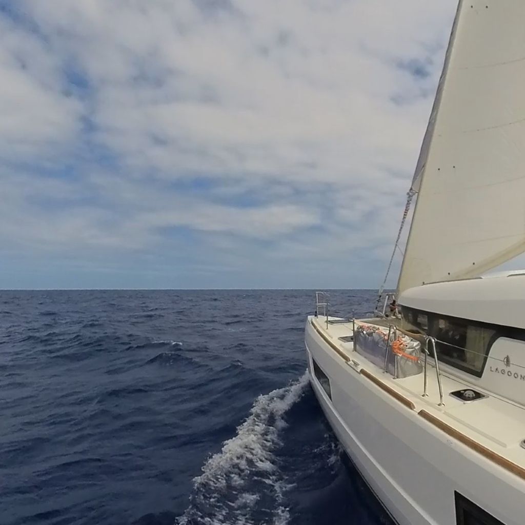 Wir reisen weiter Richtung Westen. Von Fidschi kommend ist Vanuatu unser nächster Stop. Eine ganze Flotille bricht nahezu zeitgleich nach dem Ausklarieren in Port Denerau auf, um Port Resolution im Süden Vanuatus oder die Hauptstadt Port Vila weiter nördlich zu erreichen. Das lang ersehnte Wetterfenster hat viele Yachten veranlasst, die Gelegenheit zu nutzen. Wir haben günstige Winde und mäßigen Wellengang. Mit der s.g. weißen Garderobe ist MariaNoa besonders langsam, nur bei weniger Wind können wir mit dem 85 m² Gennacker mit den anderen Yachten mithalten. Durch die große Anzahl gleichzeitig segelnder Schiffe, erkennen wir, dass eine Lagoon 40 auf engstem Raum maximalen Wohnkomfort bietet aber eben auch sehr langsam ist.