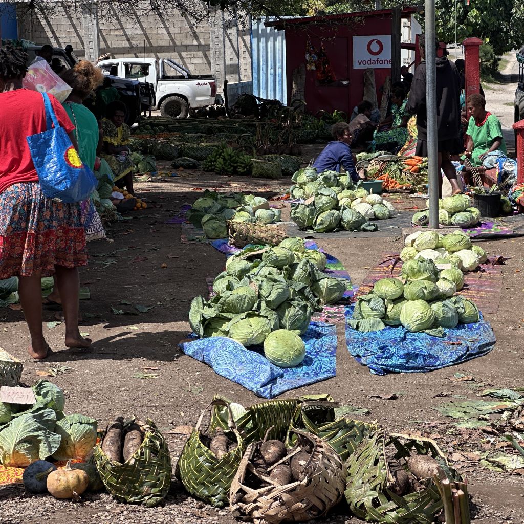 Lenakel liegt in Lee des Vulcans. Das Wetter wird deutlich besser. Am ATM in Lenakel können wir uns endlich mit Bargeld eindecken. Hauptattraktion ist aber der Markt. Die bunten Farben der Menschen konkurrieren mit den Farben von Obst und Gemüse. Ansonsten bietet Lenakel nichts von Interesse. In einem Restaurant verbringen wir die Zeit bis zum vereinbarten Treff, um die Rückfahrt anzutreten. Auch der Fahrer kommt früher und die abenteuerliche Rückfahrt kann beginnen.