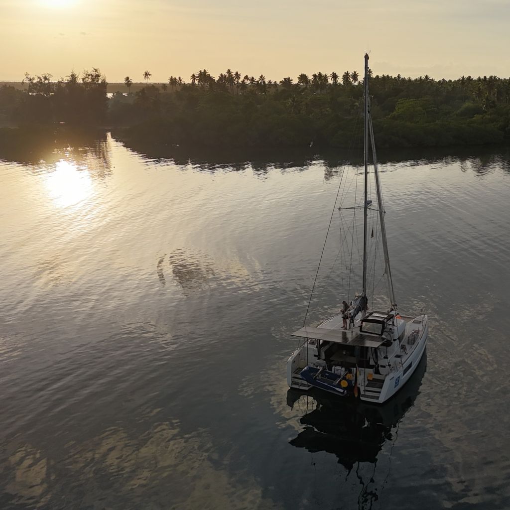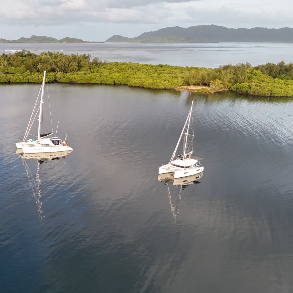 We travel further west. Coming from Fiji, Vanuatu is our next stop. An entire flotilla breaks up almost simultaneously after clearing out in Port Denerau to reach Port Resolution in the south of Vanuatu or the capital Port Vila further north. The long-awaited weather window has prompted many yachts to take the opportunity. We have favorable winds and moderate waves. With the so-called white wardrobe MariaNoa is particularly slow, only with less wind we can keep up with the 85 m2 Gennacker with the other yachts. Due to the large number of ships sailing at the same time, we recognize that a Lagoon 40 in the narrowest space offers maximum living comfort but is also very slow.