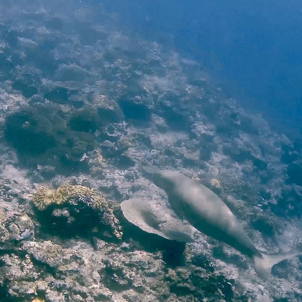 The boat that picks us up to the Dugongs is well filled. At first place, the Dugongs are not to be found today, so we have to go far out. Again, the population is only small. For this we meet a colorful coral world with even more colorful fish.